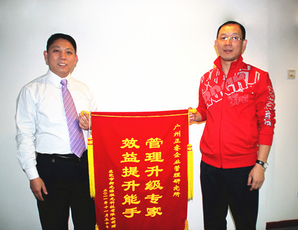 新光源董事長李健宇贈(zèng)送正睿咨詢“管理升級專家,效益提升能手”錦旗